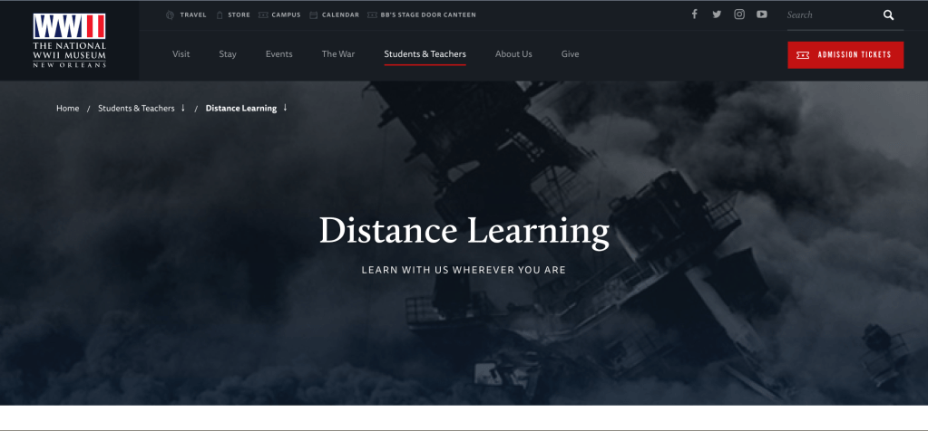 Another example is the National WWII Museum in New Orleans. For $100, you can book an interactive and virtual tour through the musuem. This project was created as a form of distance learning for students that allows them to engage during museum tours while also exploring a museum they may not be able to travel to.